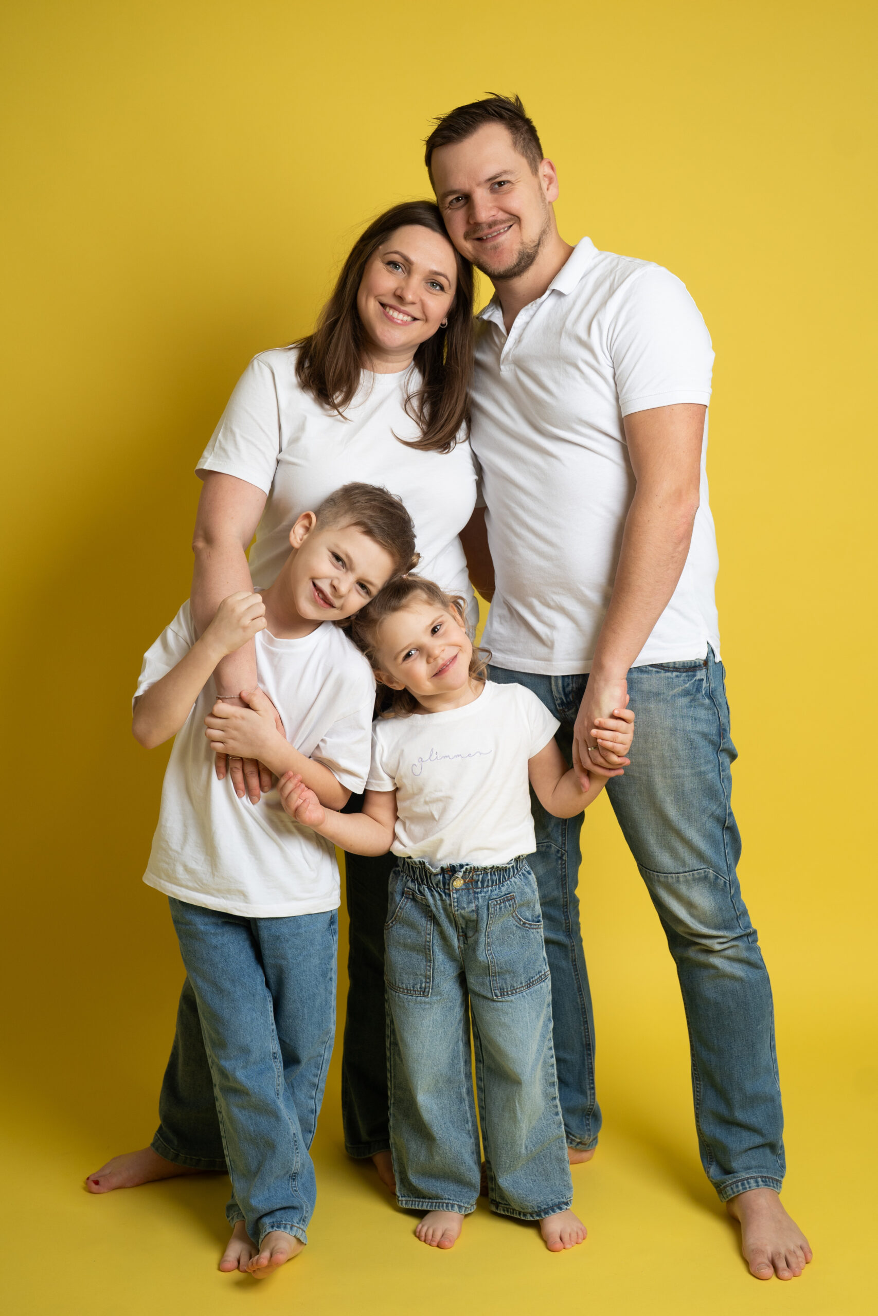 Vsaďte na jednoduchost. Nejlépe budou sedět jemné světlé přírodní barvy, Doporučuju fotit se na boso, vyvarujte se také potiskům na oblečení a velkým nápisům. Zkuste se jako rodinka sladit,